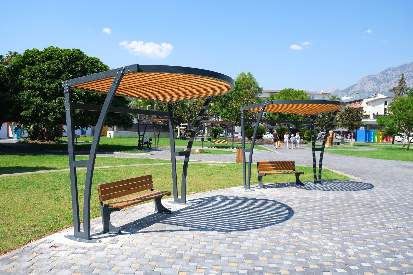 Ochrana před sluncem a deštěm: Pergoly a altány (Gazebos), které vytvářejí oázy klidu v městské zástavbě.